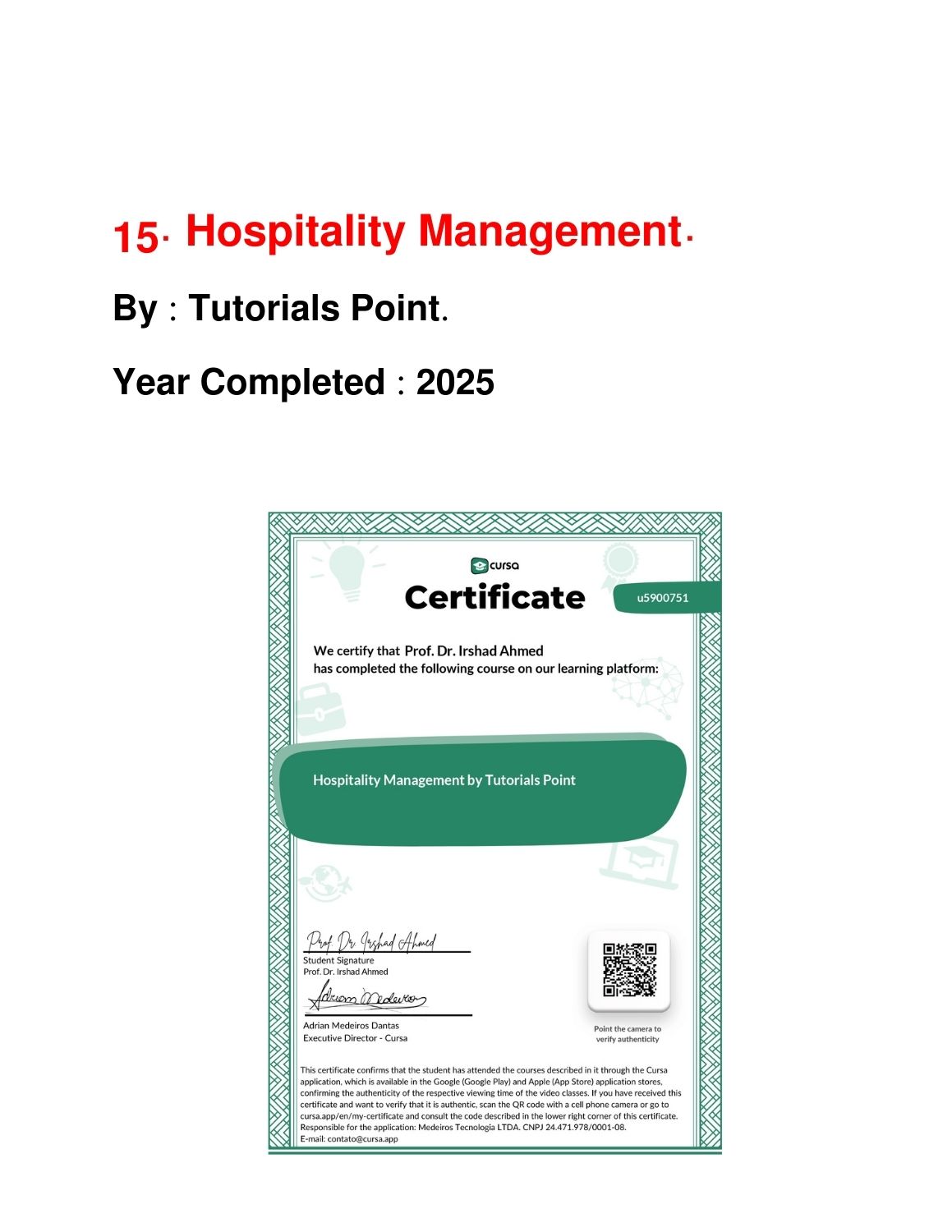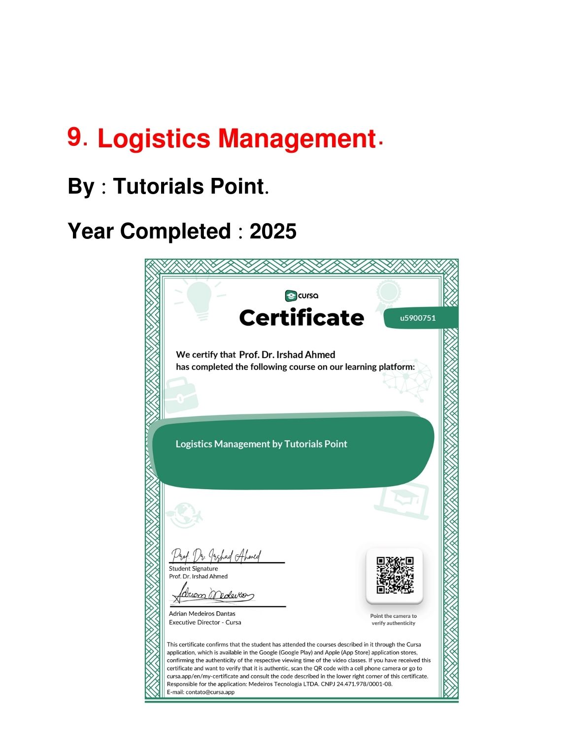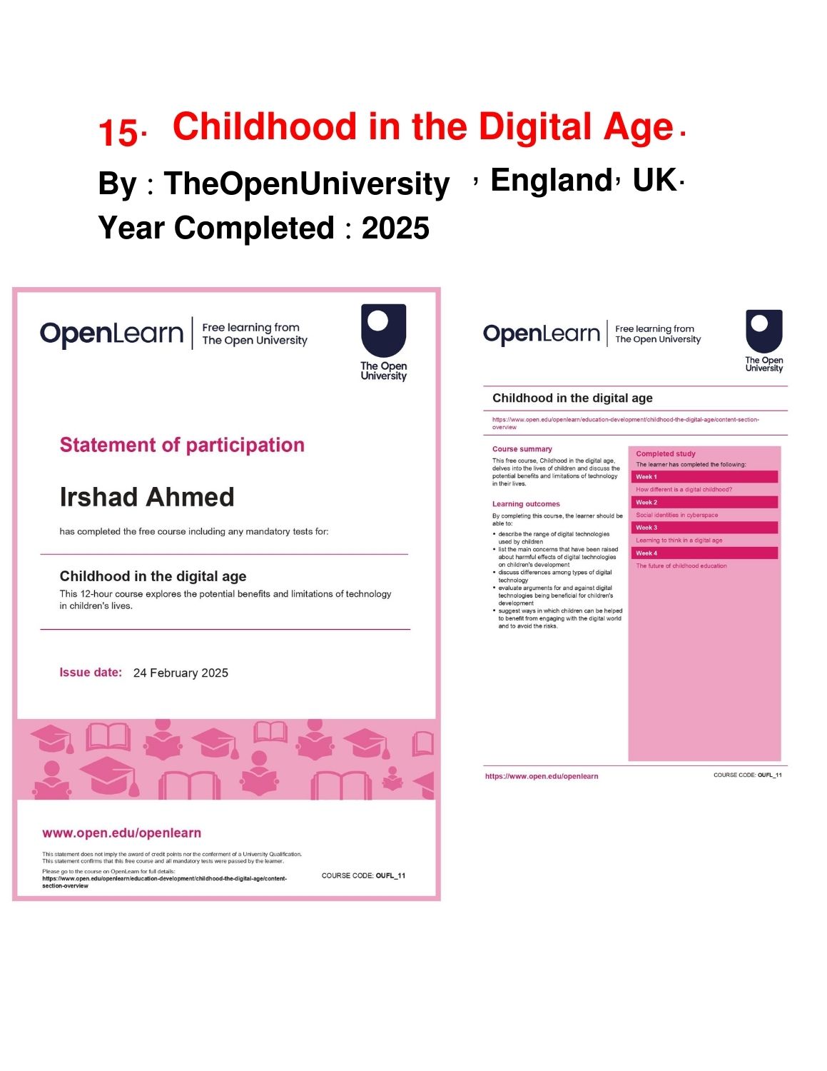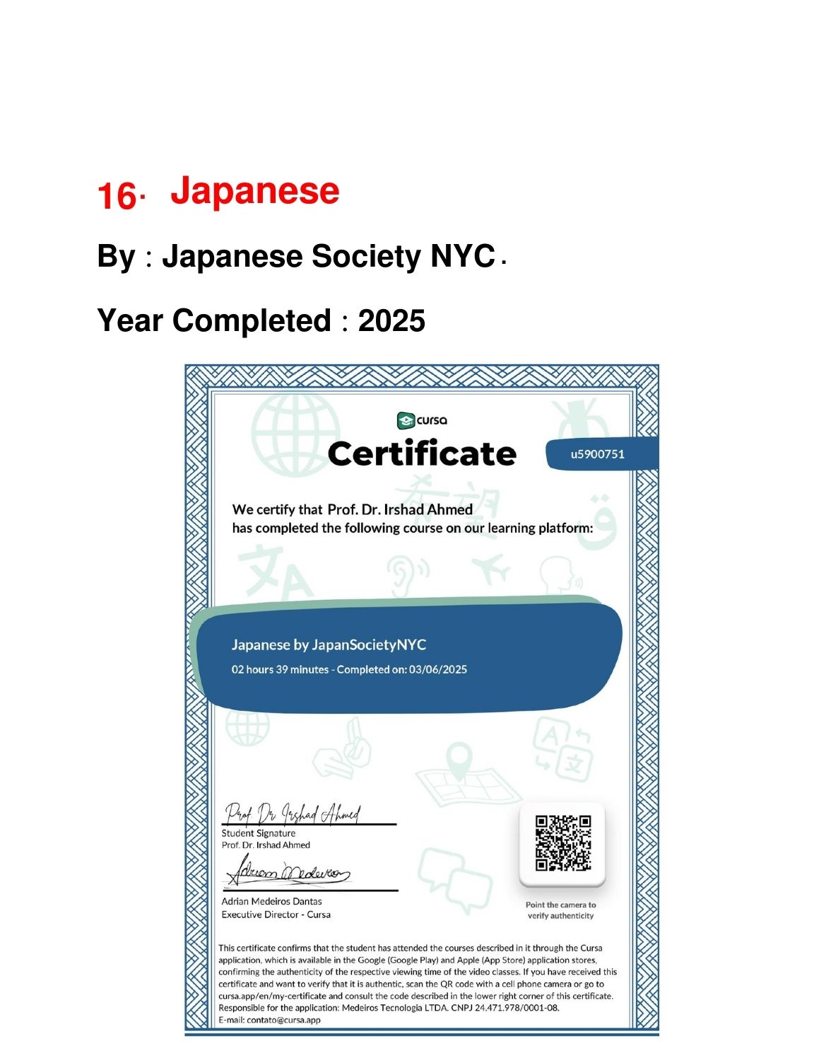 Showcase of Certificates