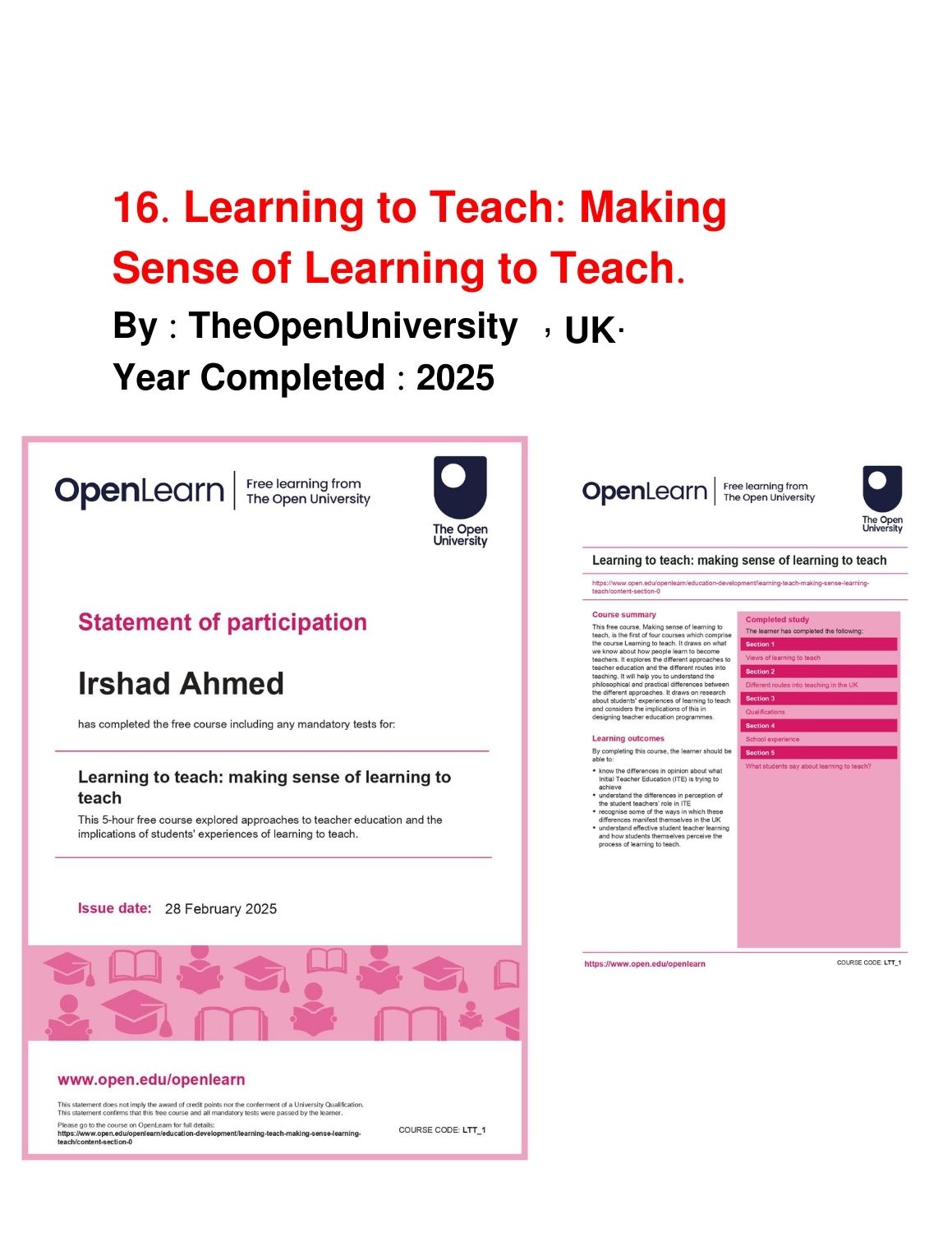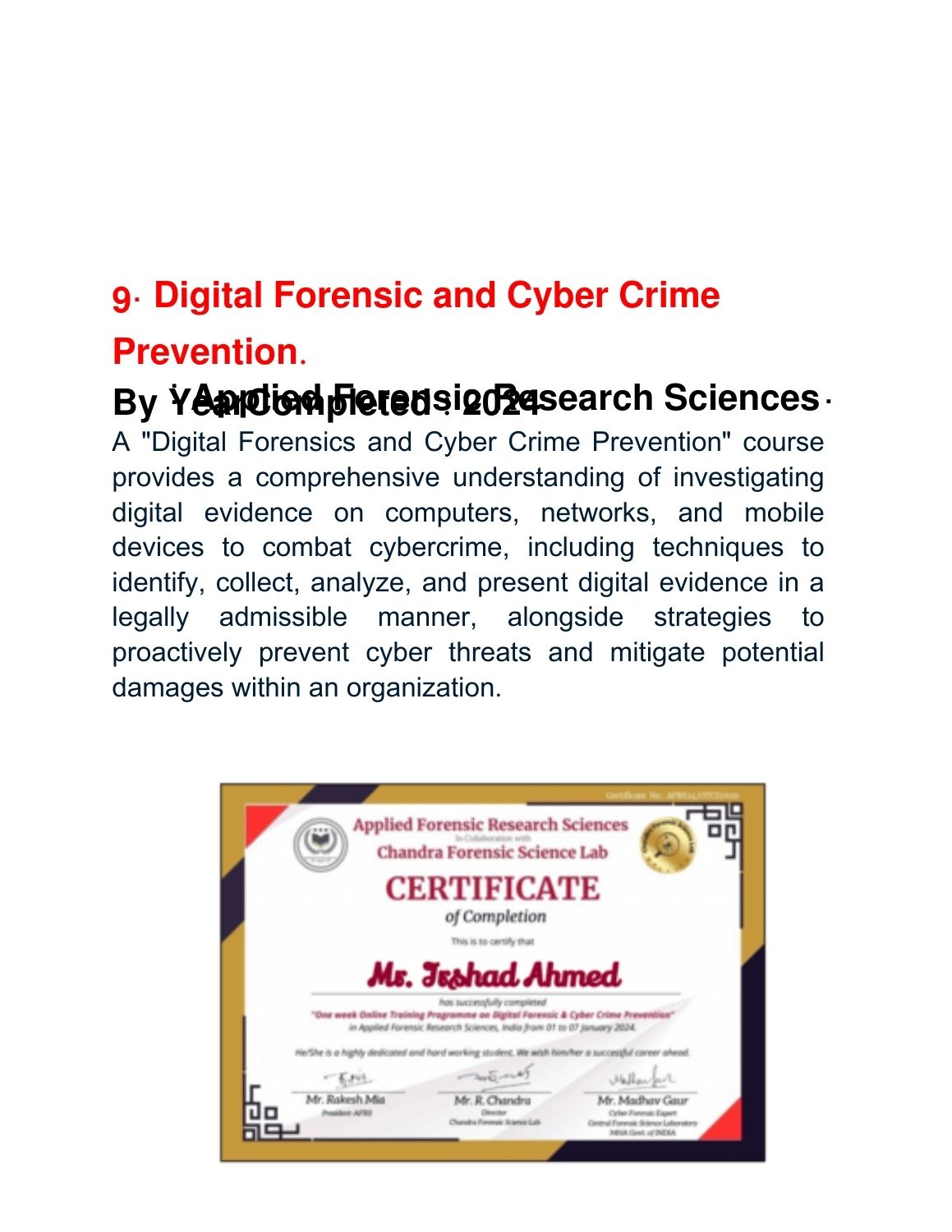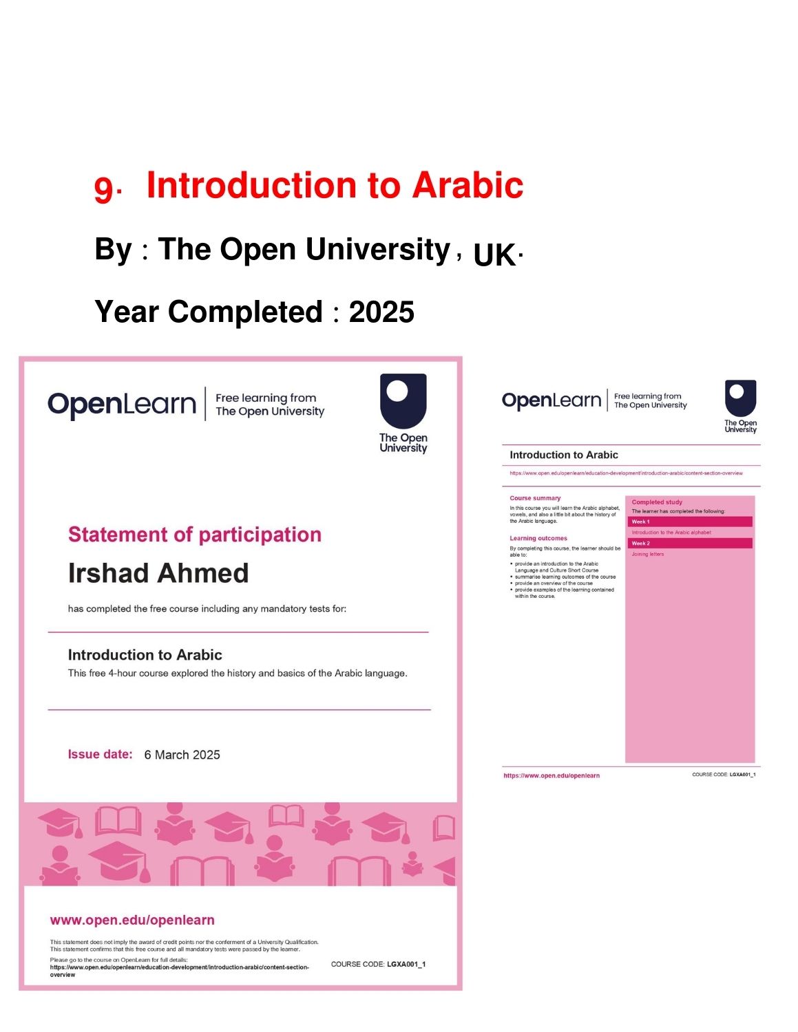 Showcase of Certificates
