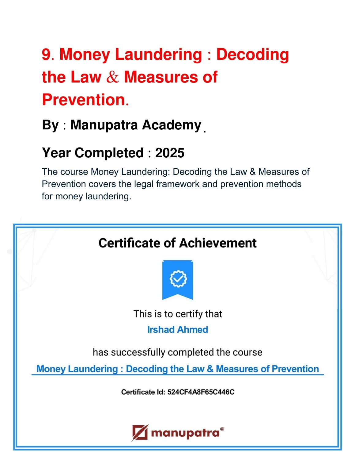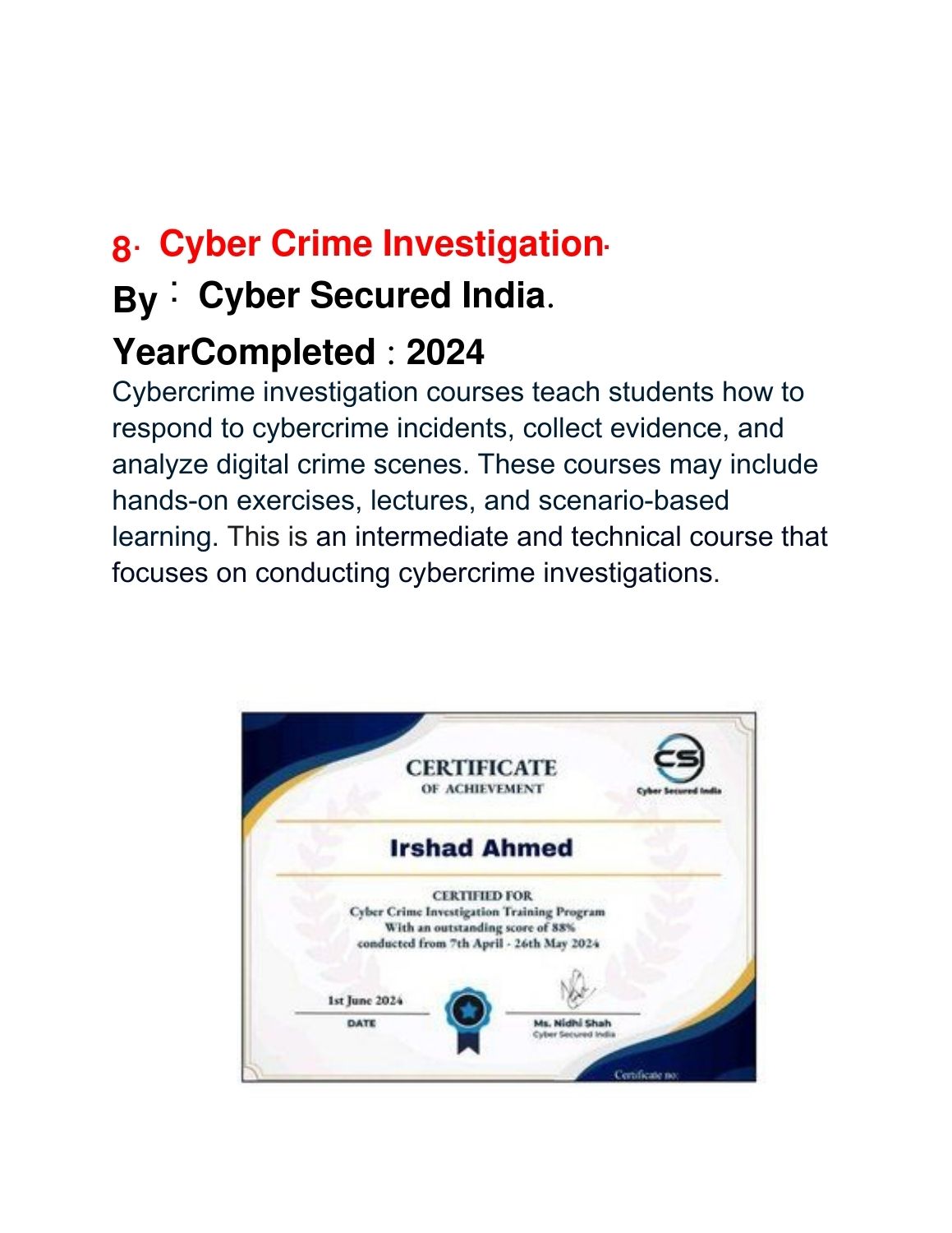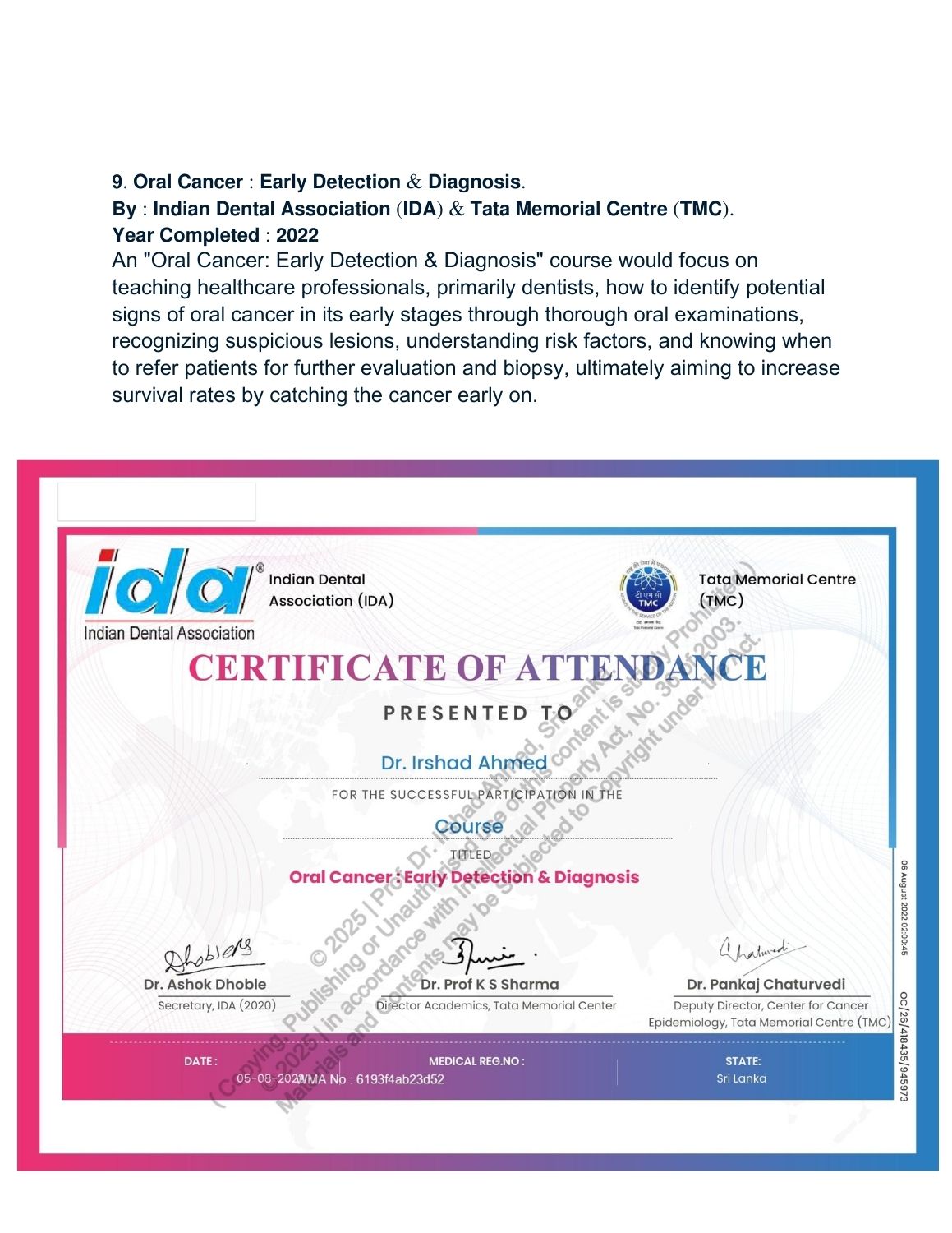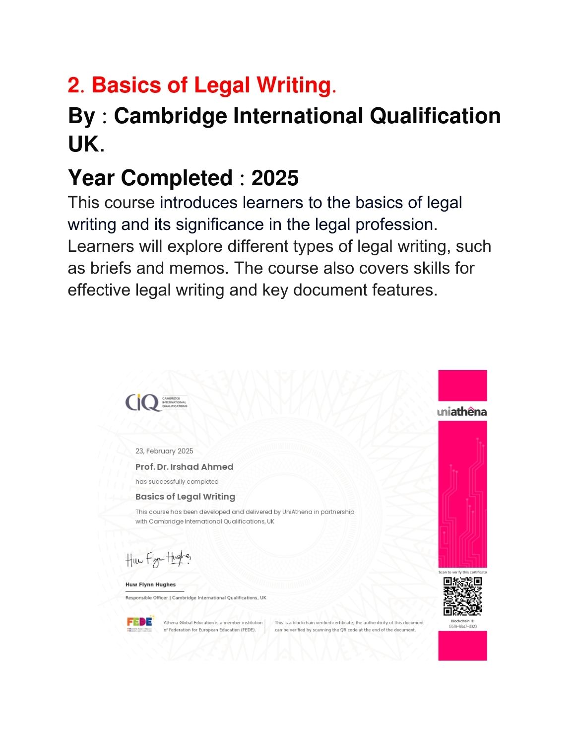 Showcase of Certificates