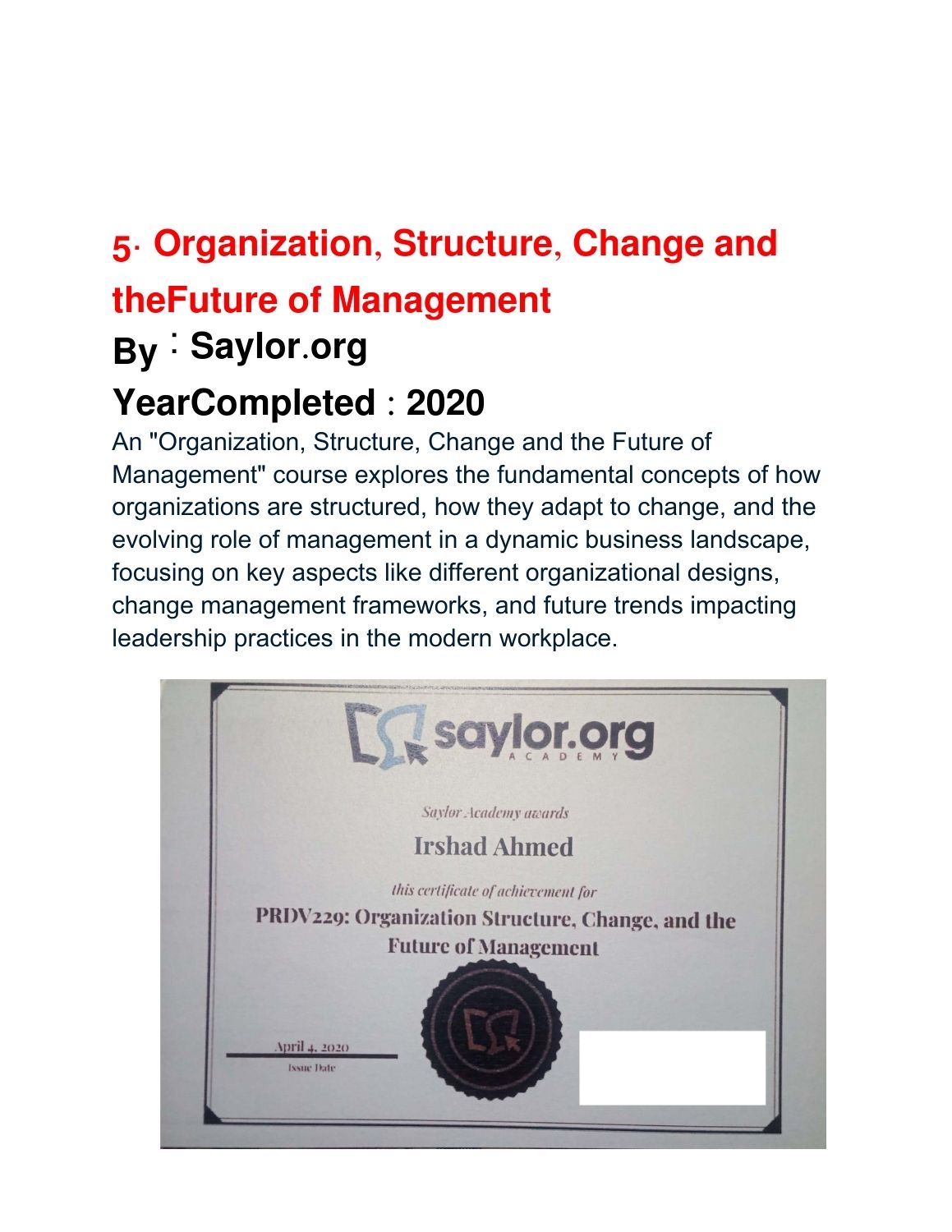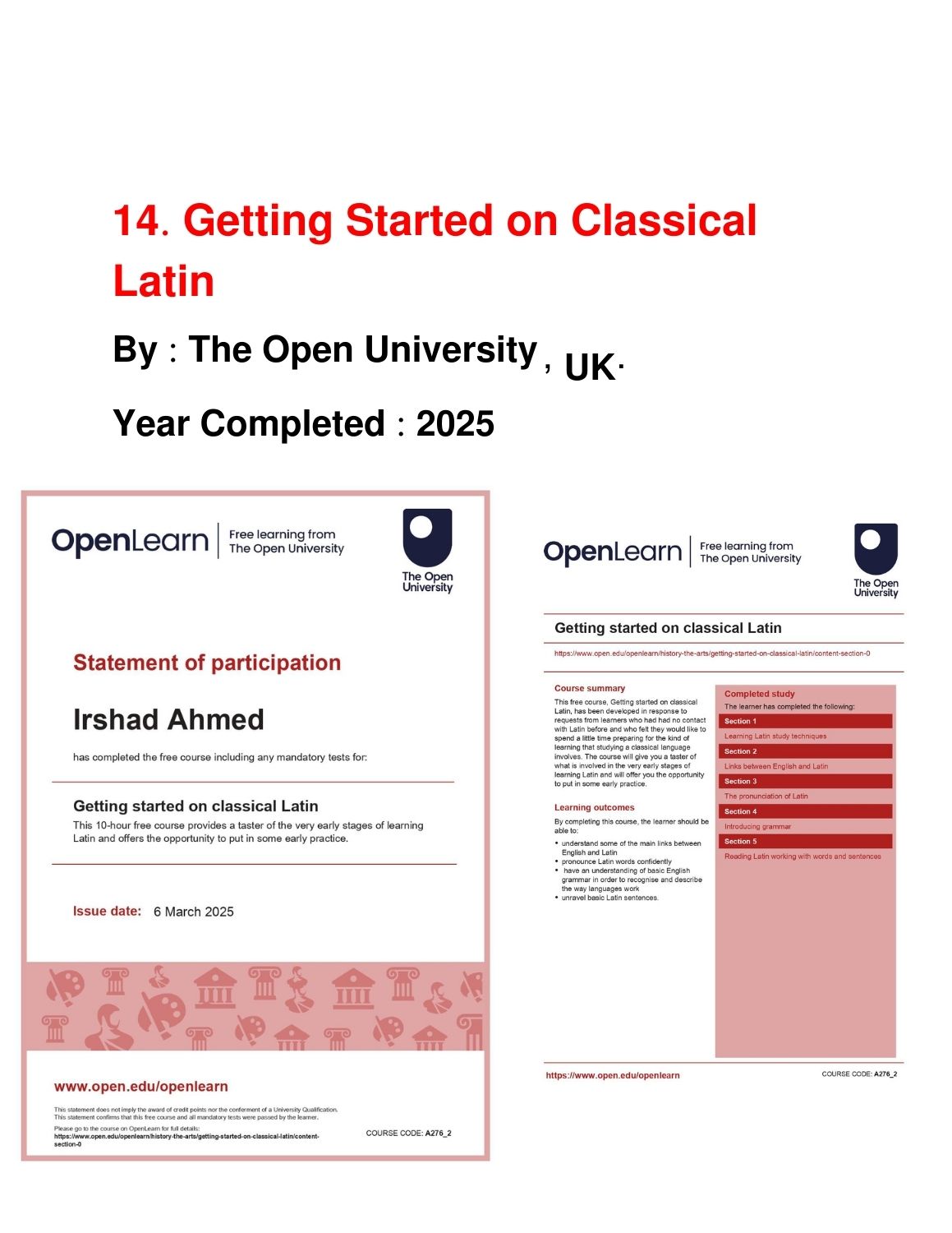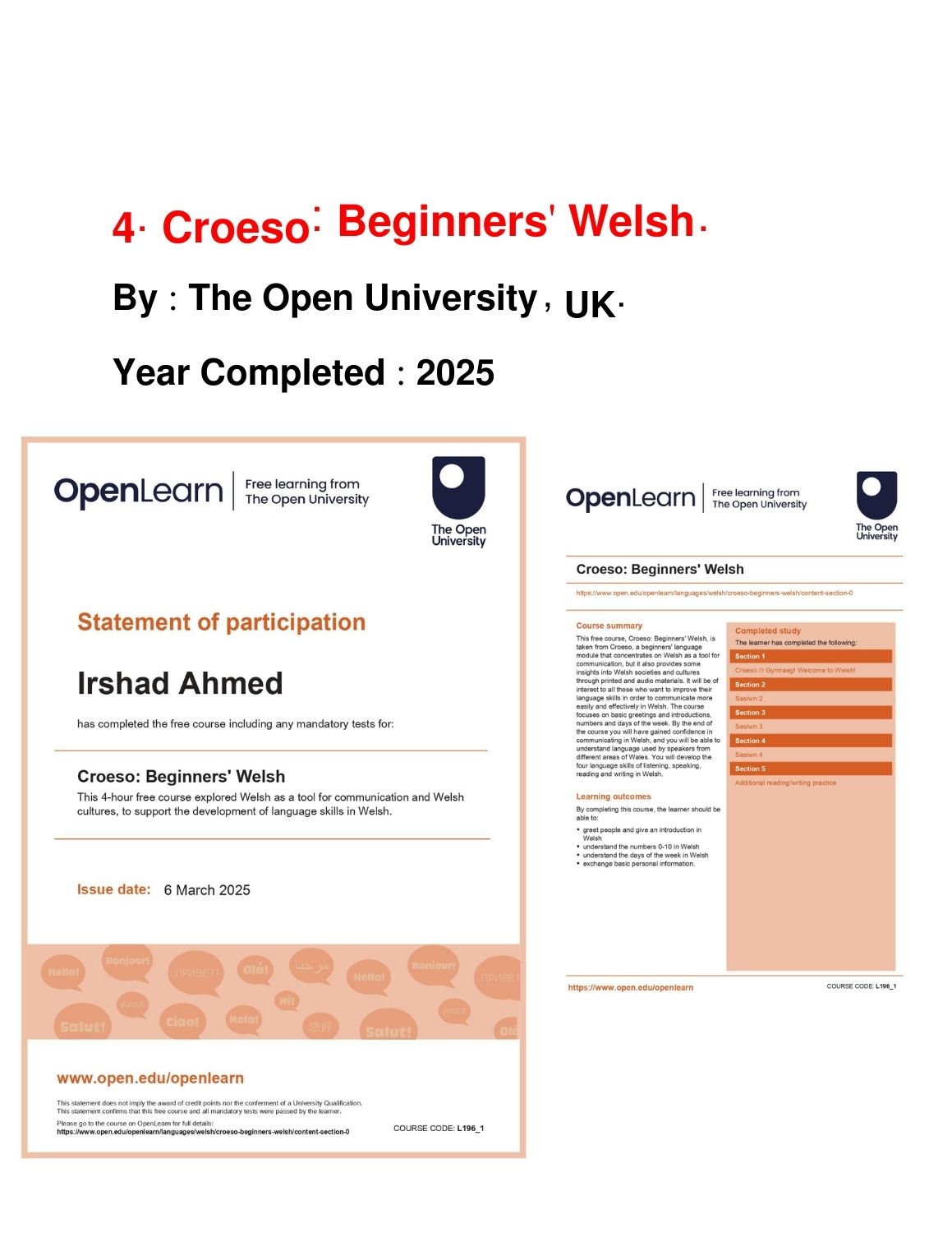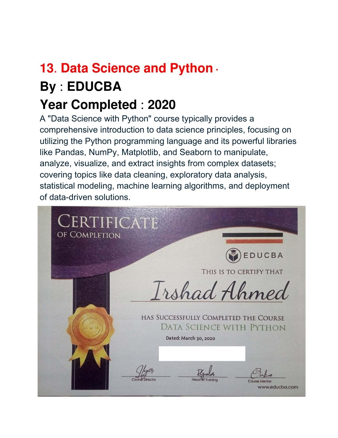 Completed Courses
