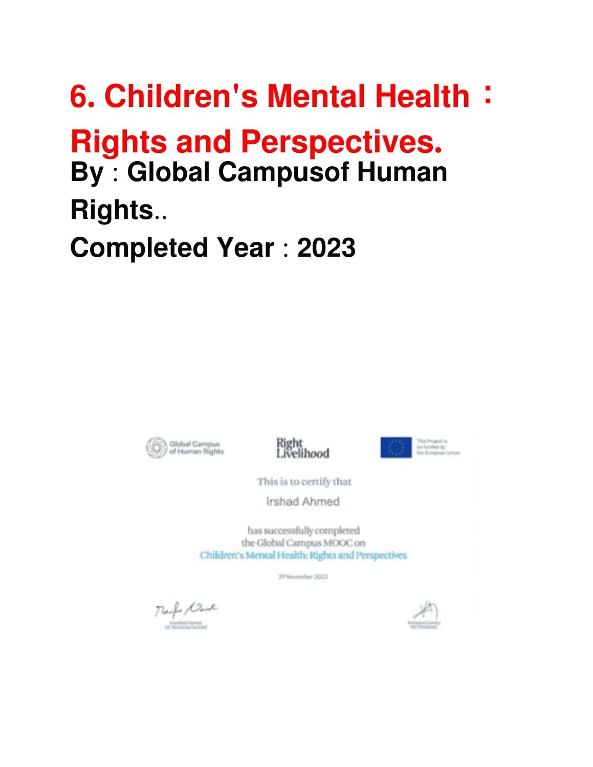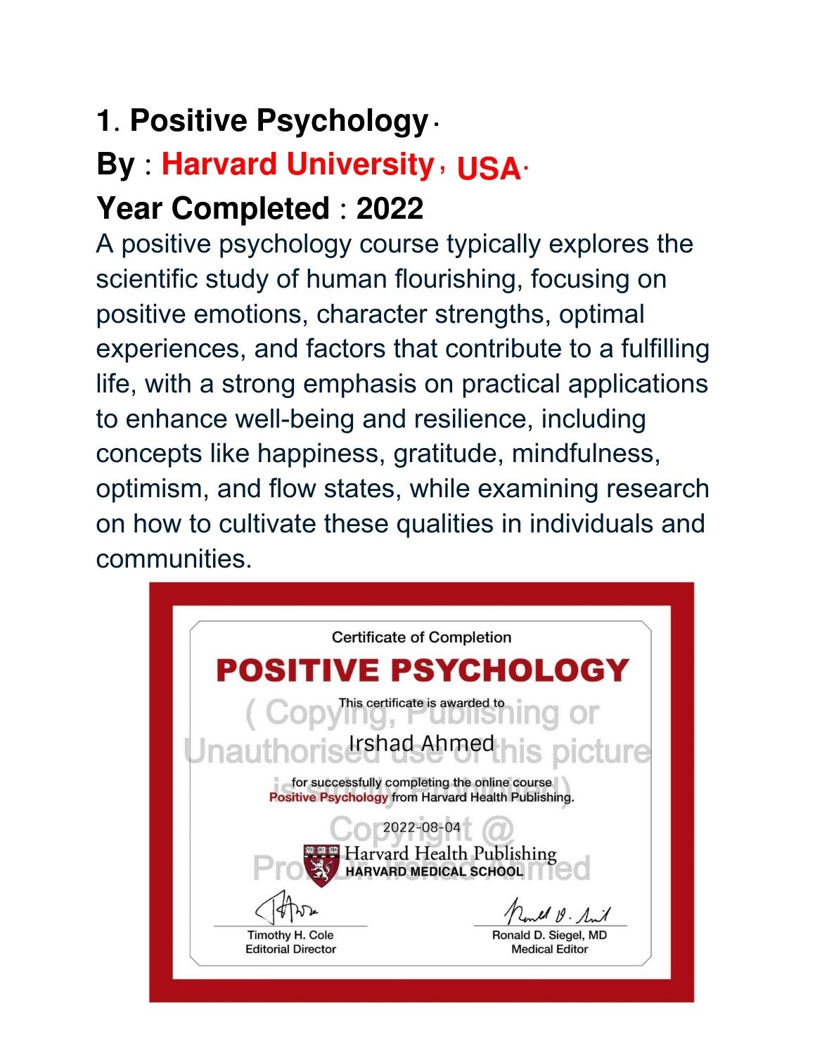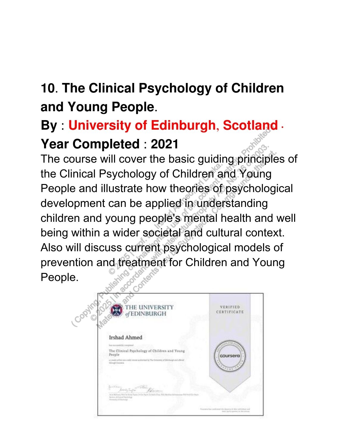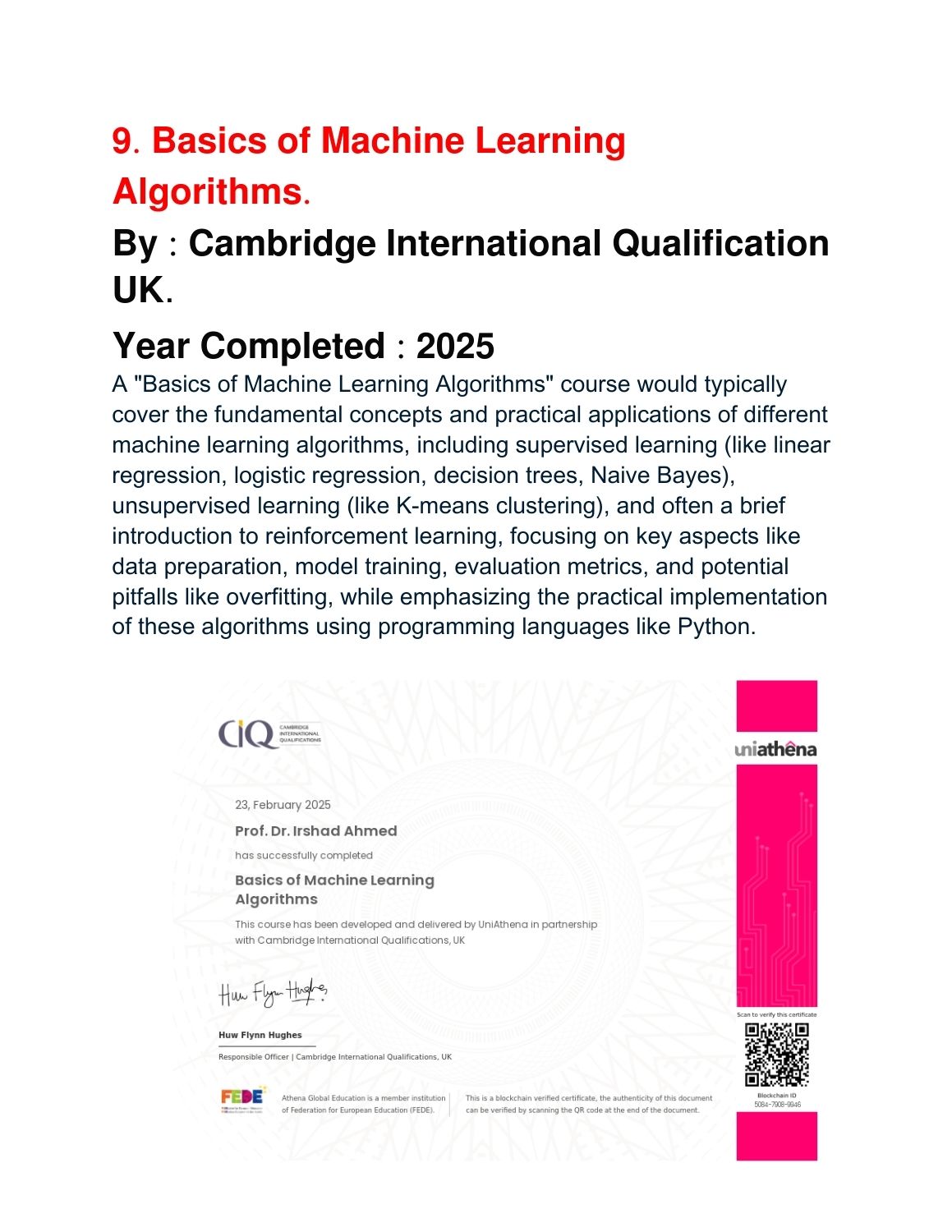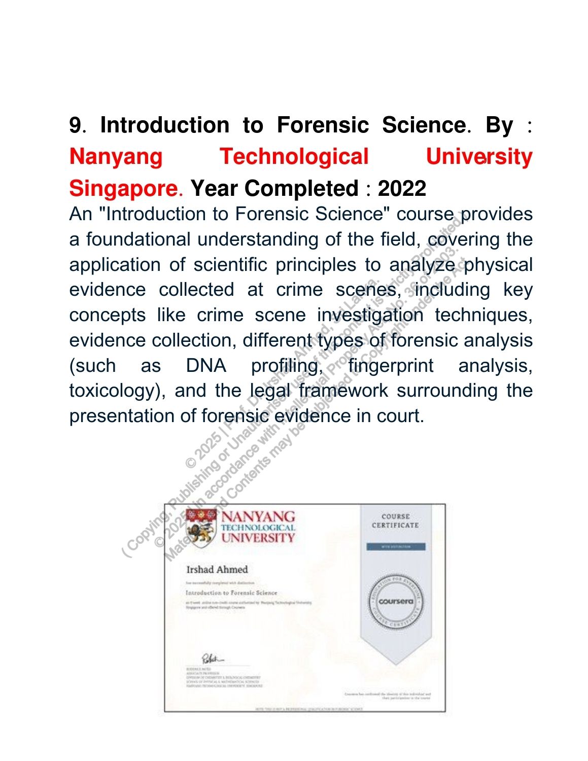 Completed Courses