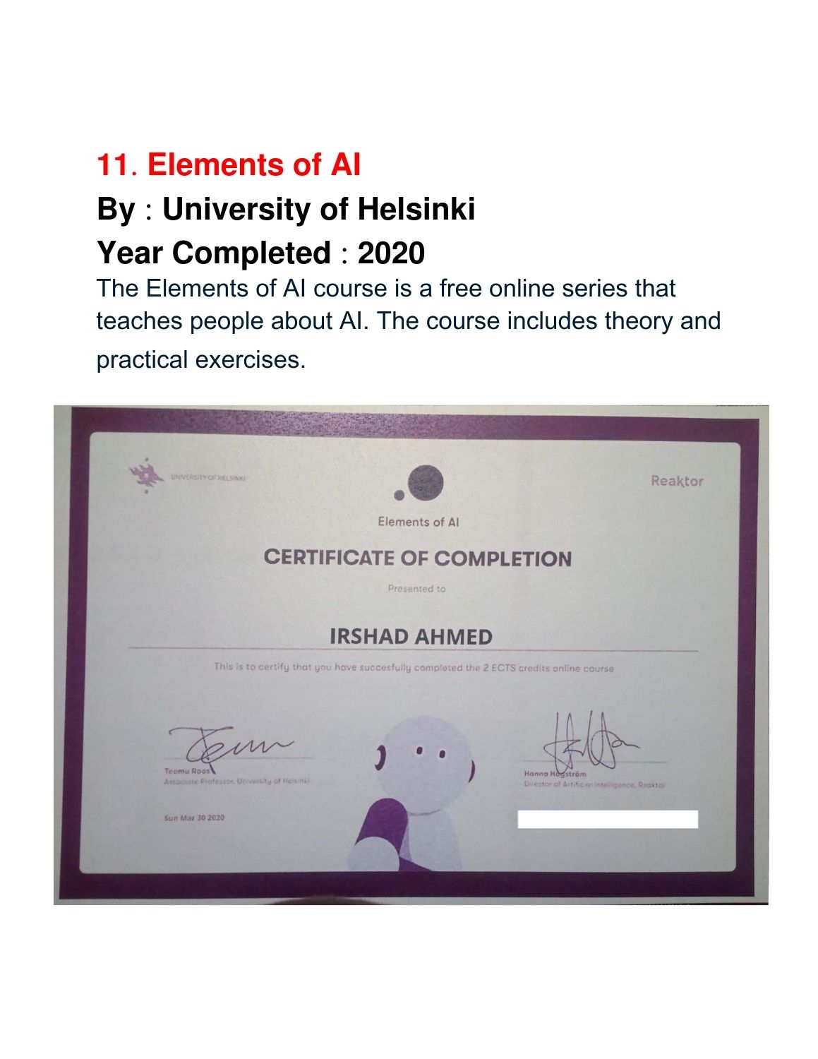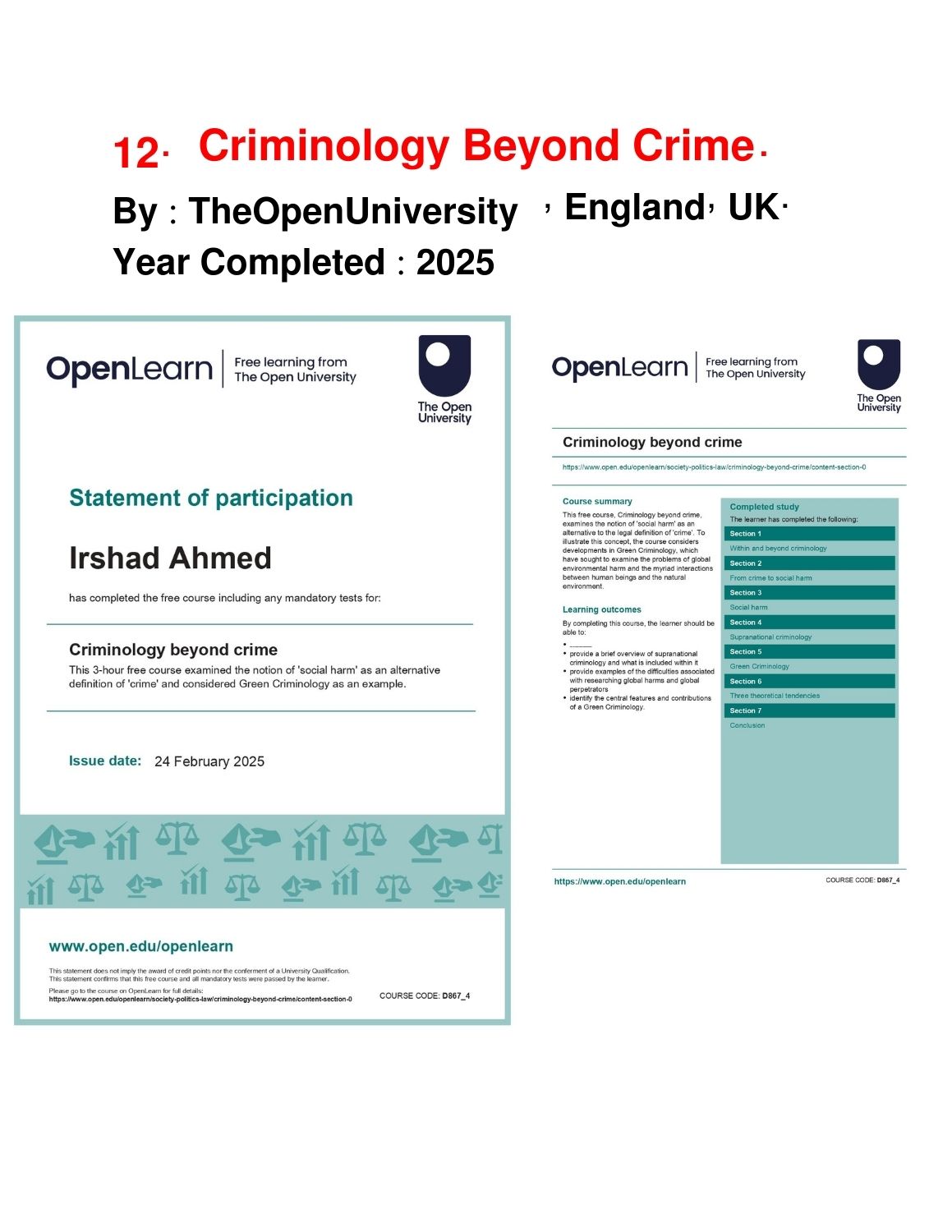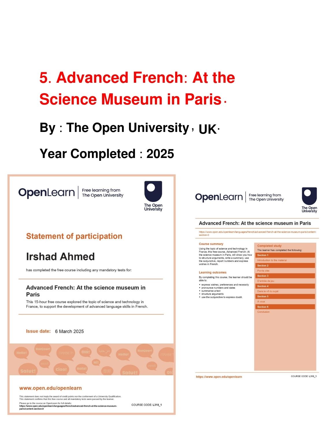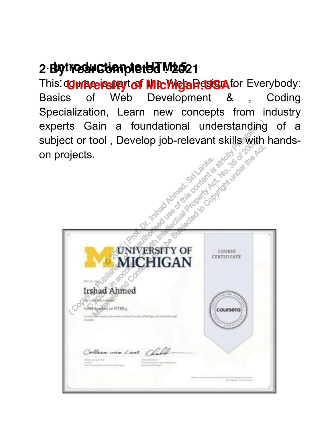 Completed Courses