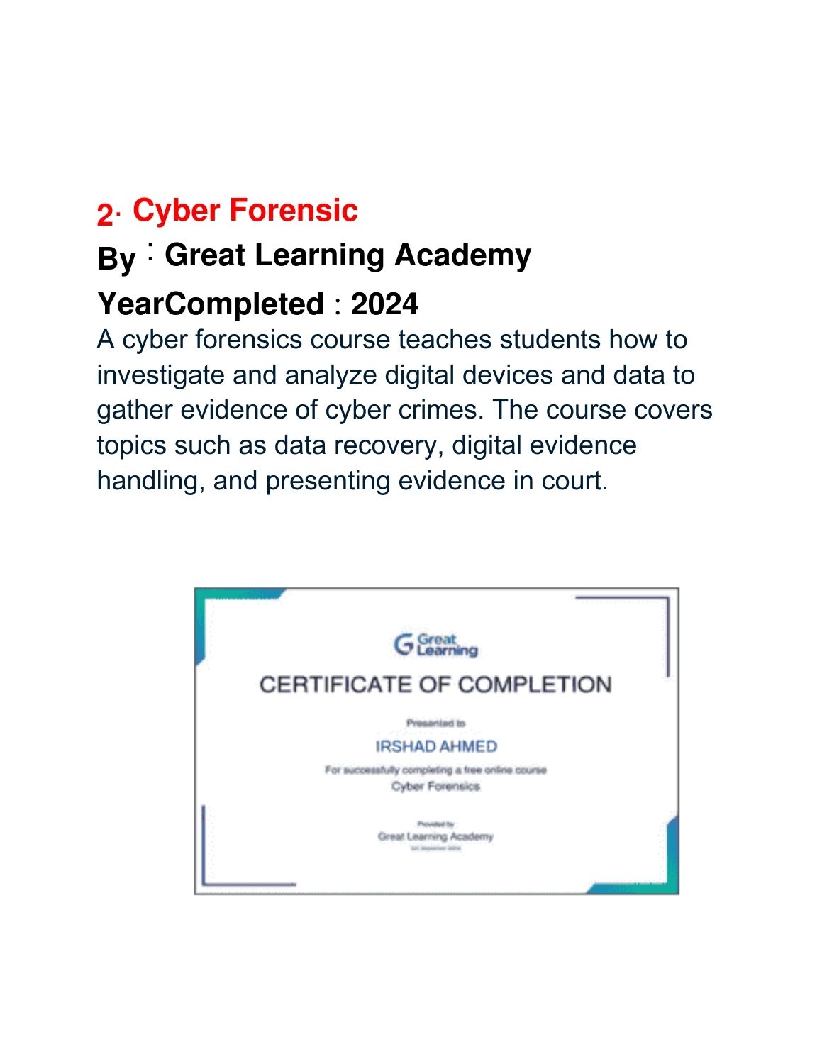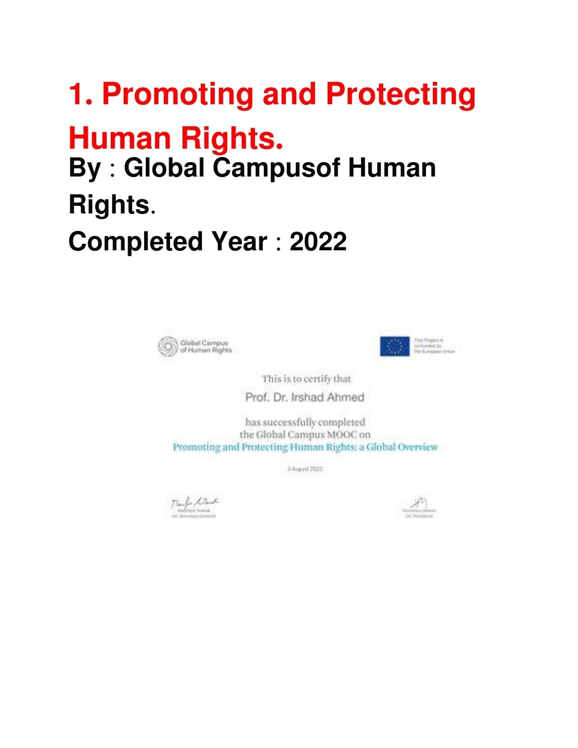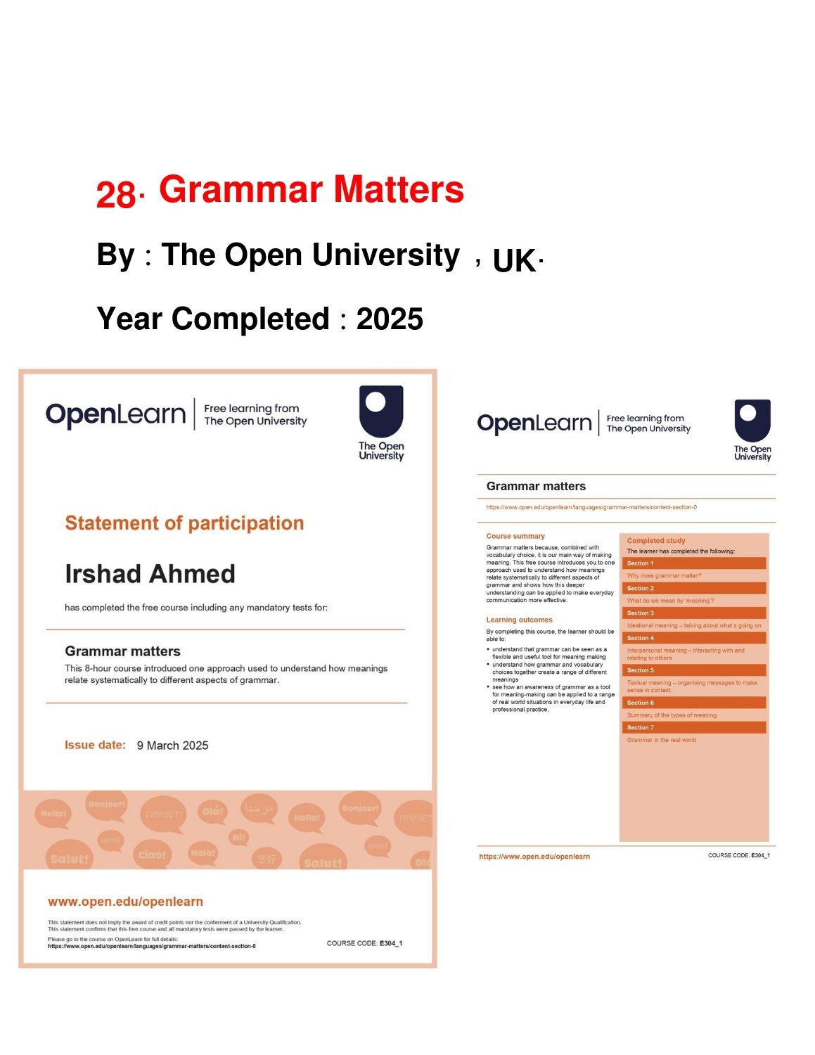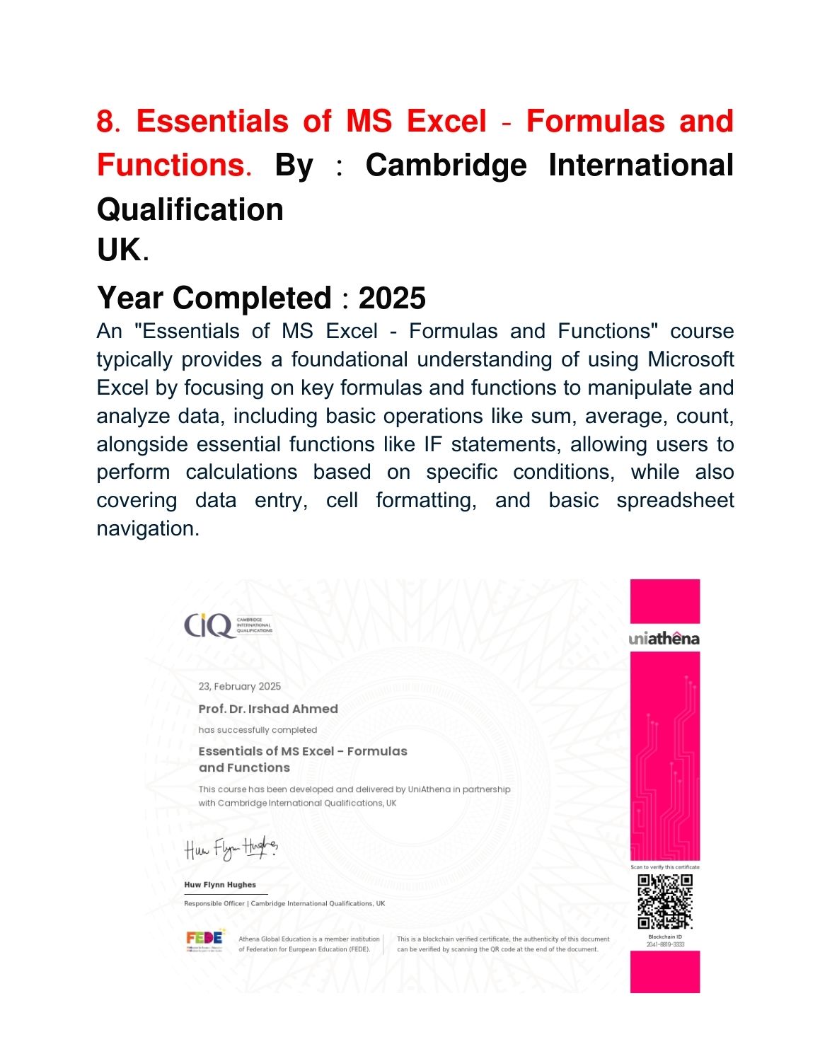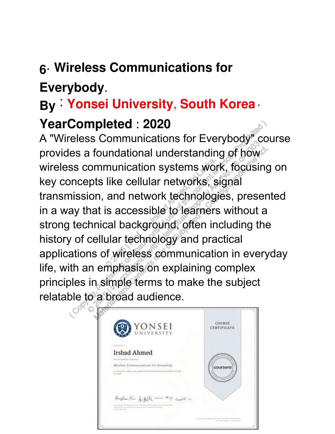 Completed Courses