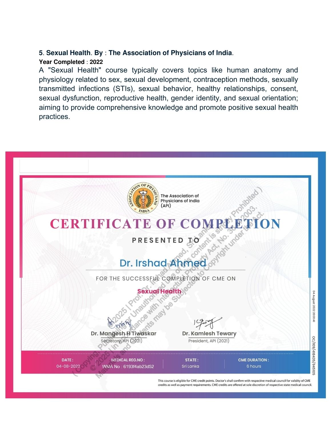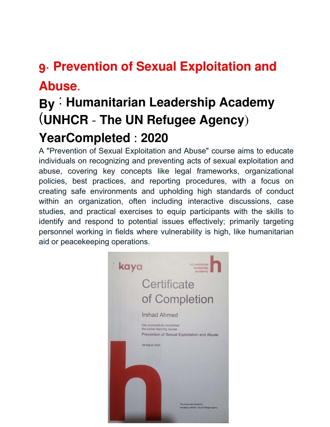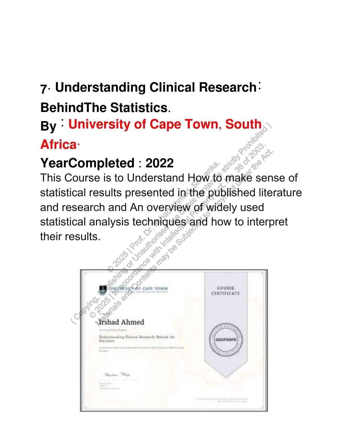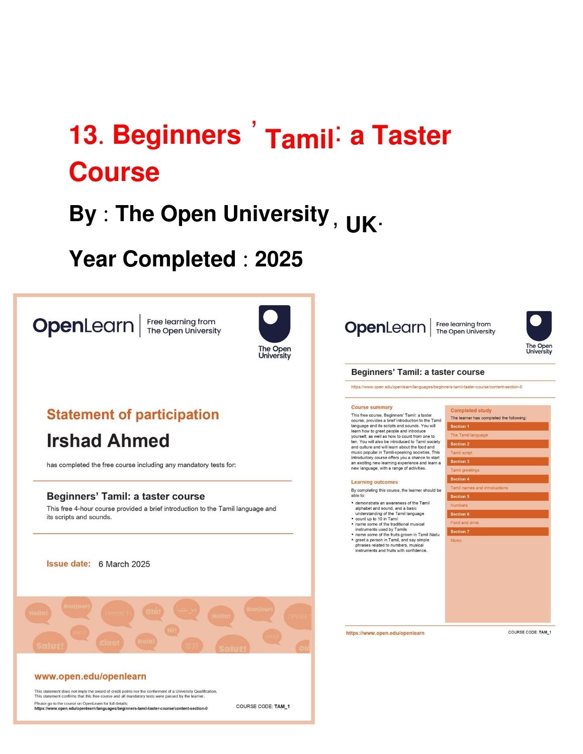 Completed Courses